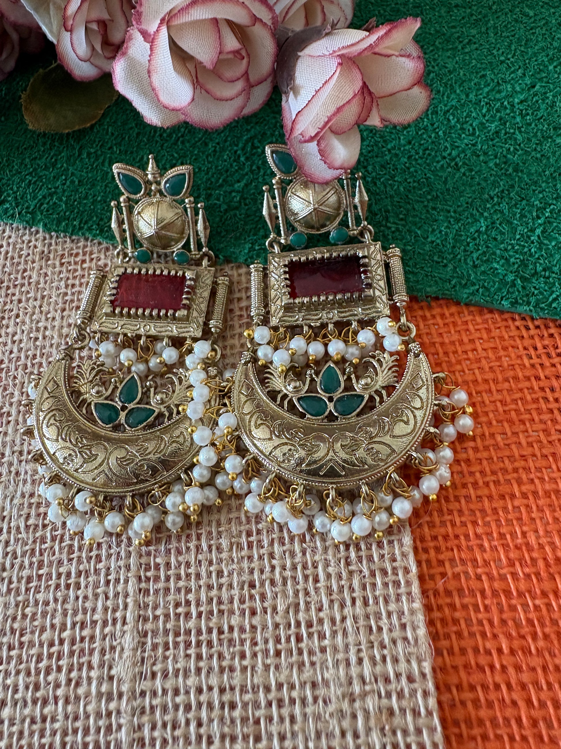 Experience the luxurious style and elegance with our Golden Replica Red Chandbali Earrings. These stunning earrings feature a rich red color and a classic chandbali design, exuding sophistication and glamour. Add a touch of royalty to any outfit and make a statement with these golden replica earrings.